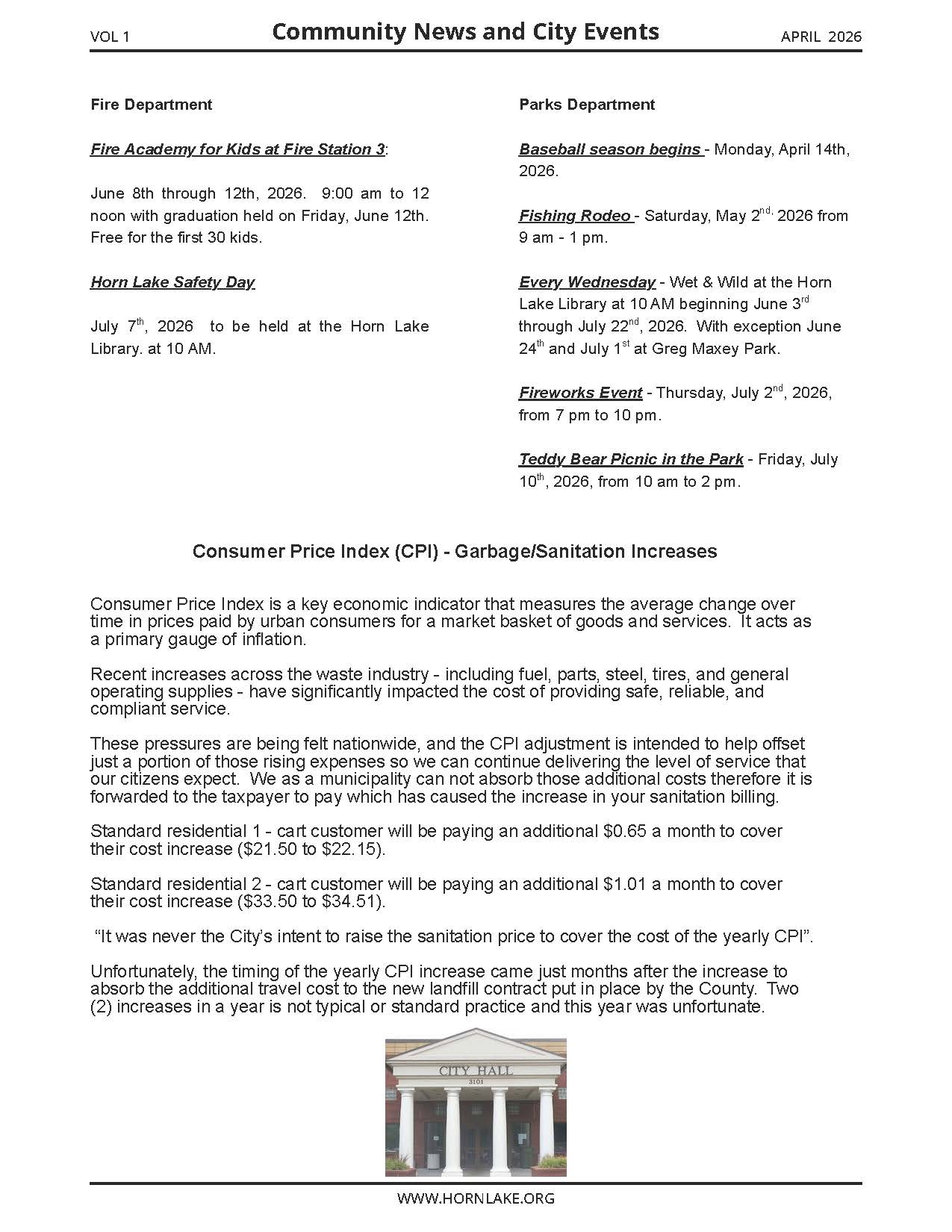 City Of Horn Lake Newsletter Vol 1
